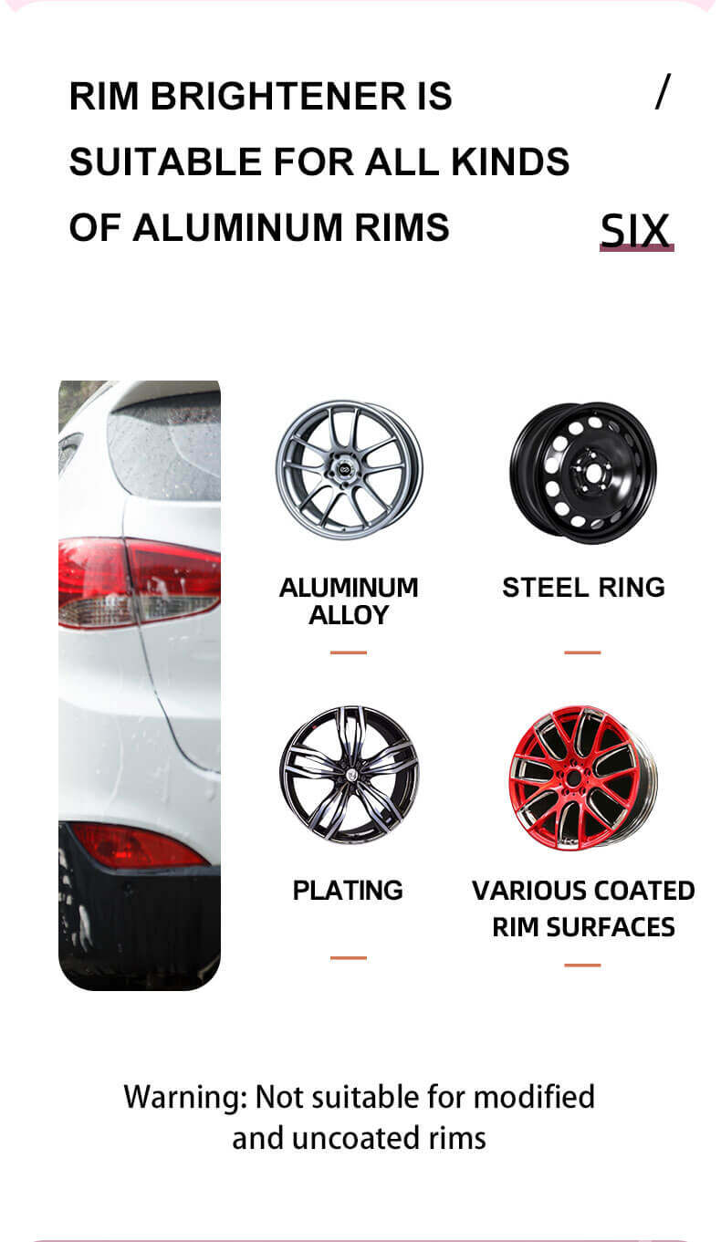 Suitable for most wheel types, but not recommended for decorative finishes, chrome-plated, or uncoated custom wheels.